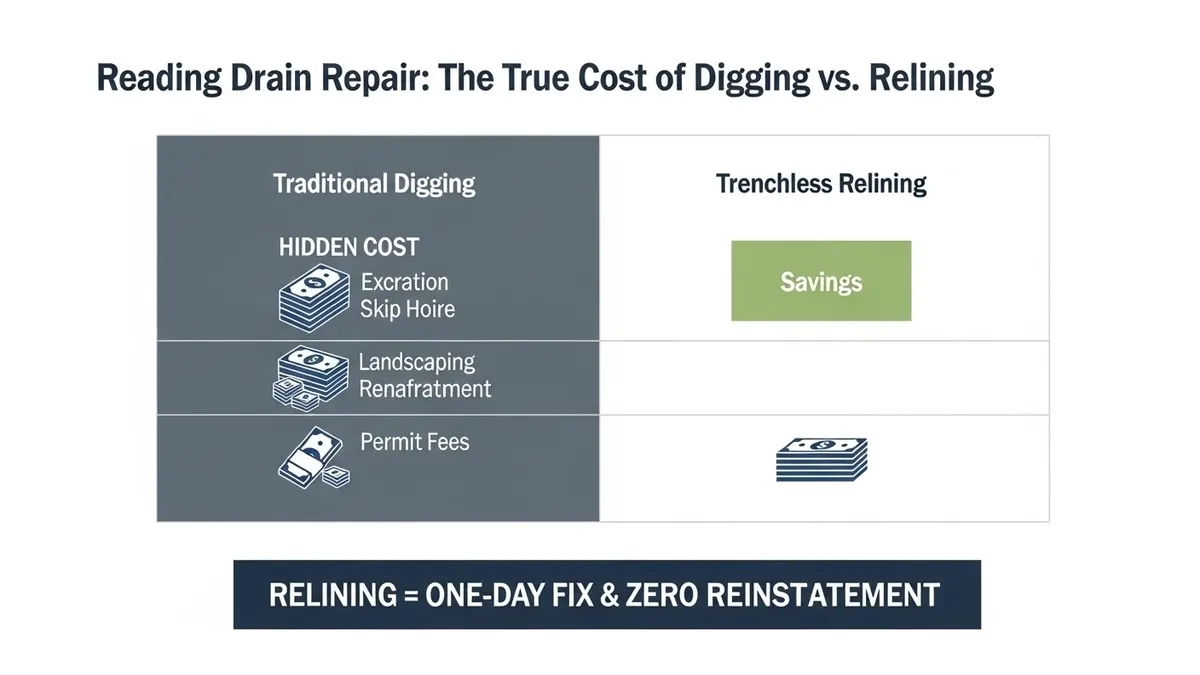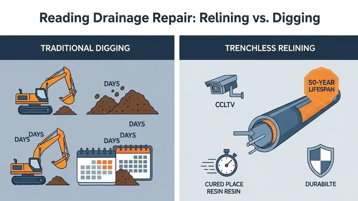 Avoid costly, messy excavations. Compare Byfleet Drain Relining vs Digging to save your home, time, and money with our expert, minimally invasive, and durable no-dig repair solutions for local drains.